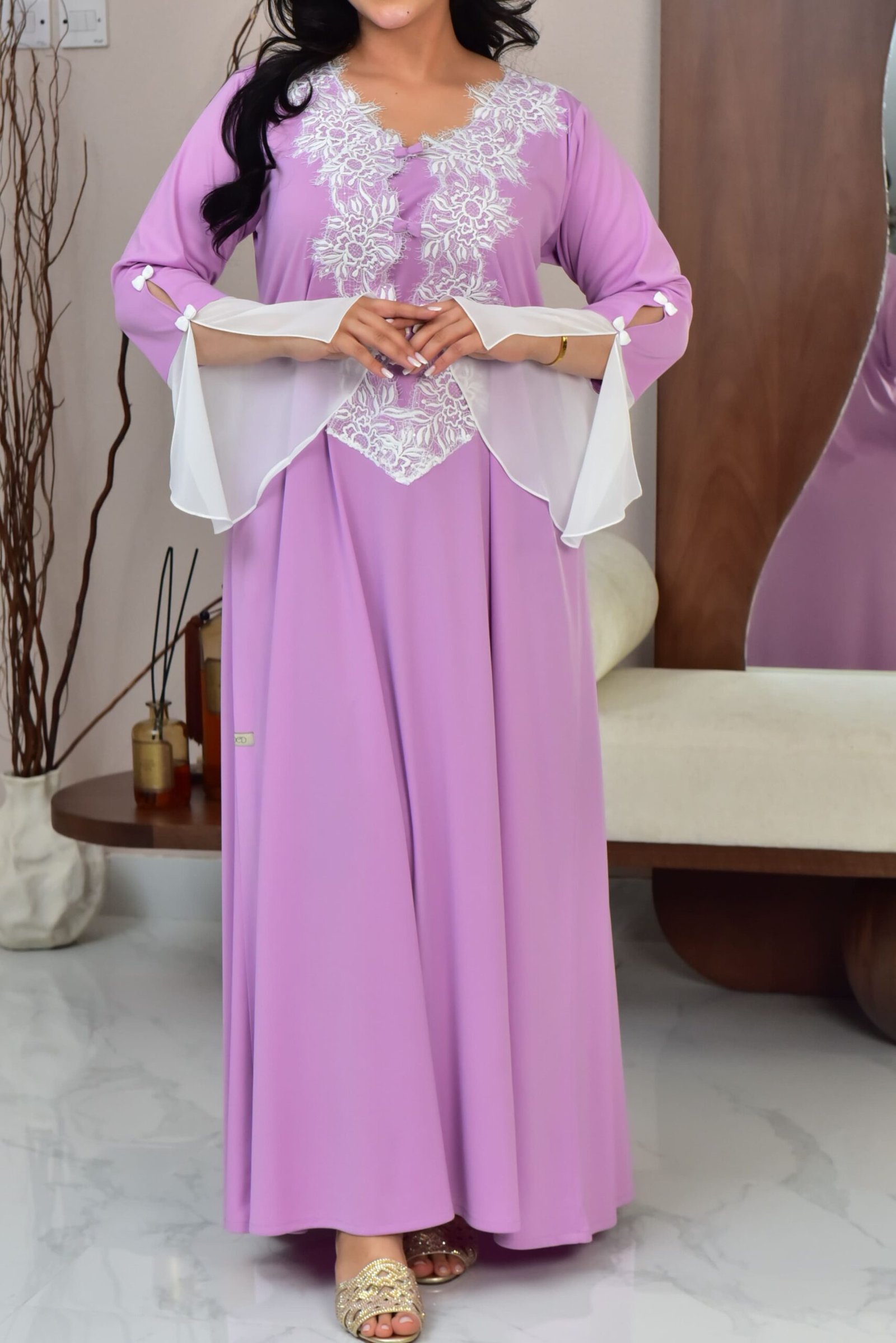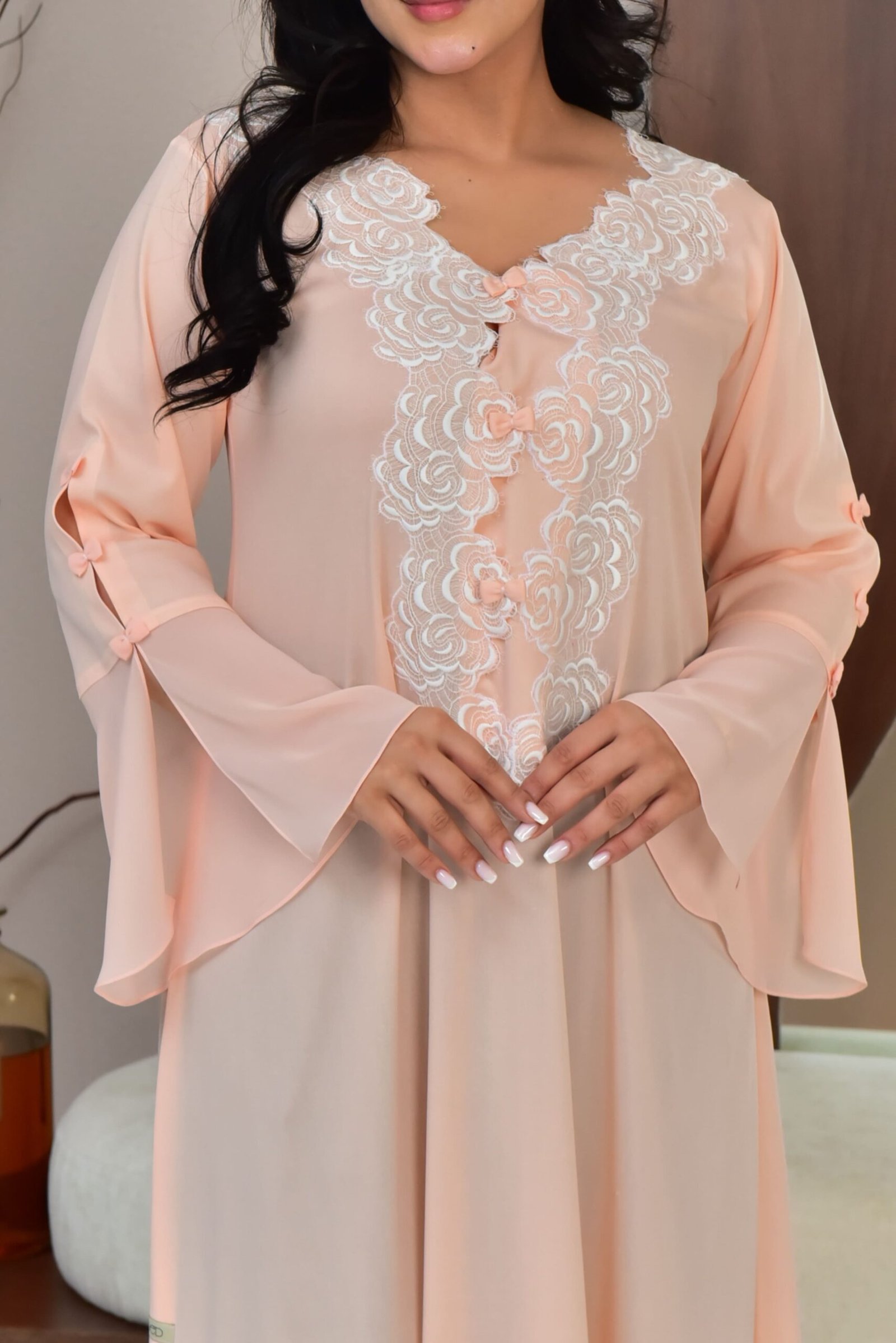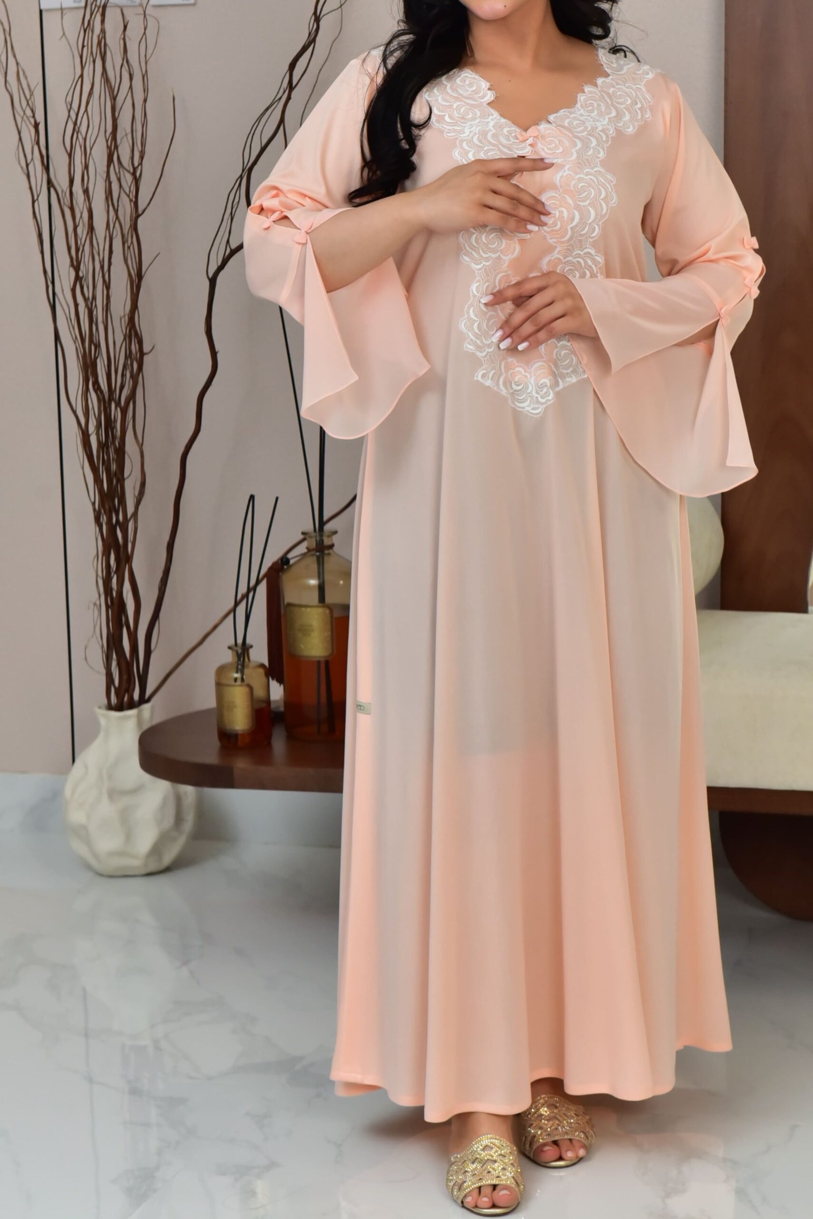 درس من قماش القطن ب دانتيل ناعم مناسب للحمل – للرضاعة – لاستقبال – للبيت