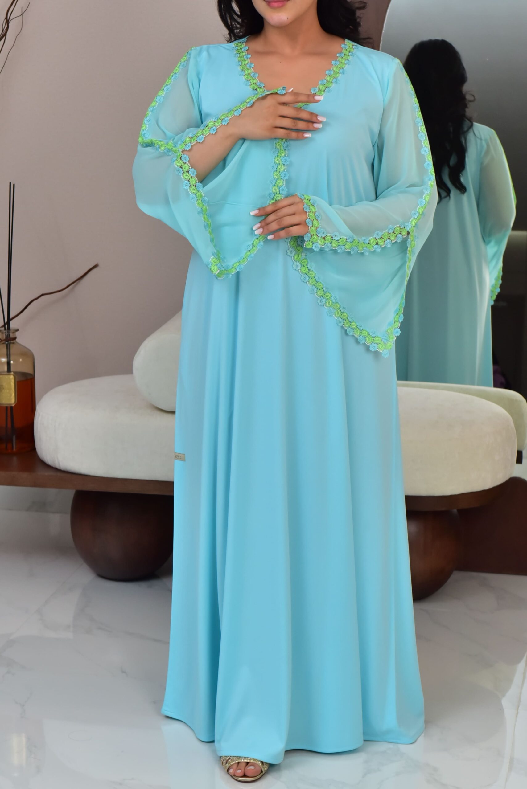 درس من قماش القطن ب دانتيل ناعم مناسب للحمل – للرضاعة – لاستقبال – للبيت