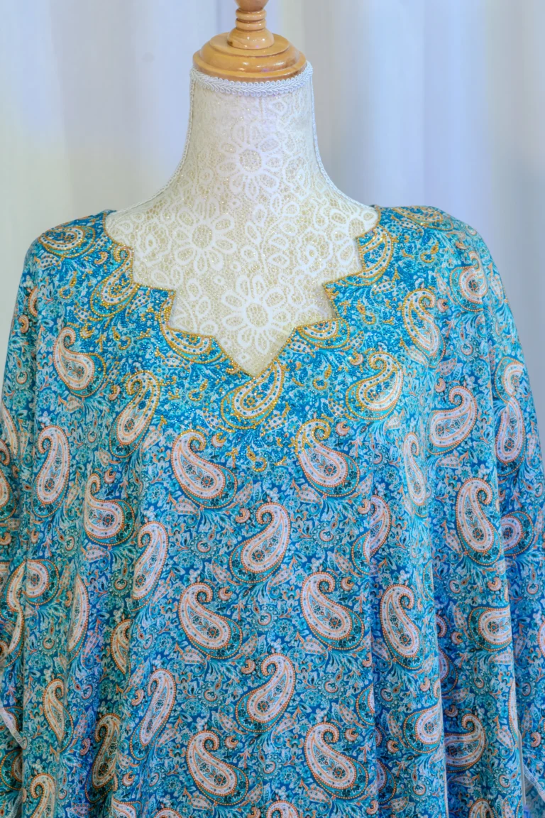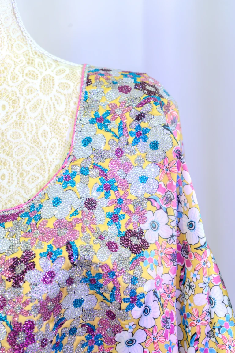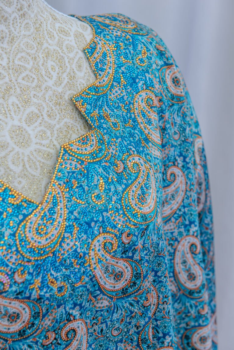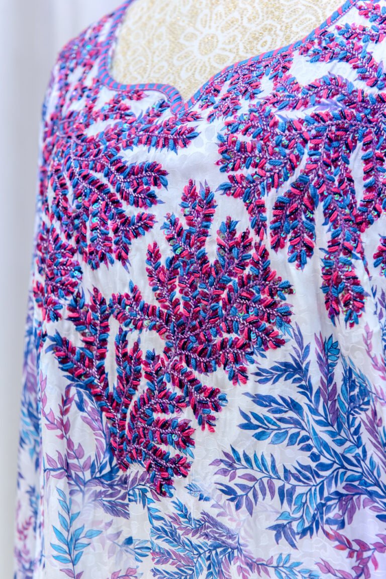 كندورة مورده بألوان جميلة و أنيقه تفتح النفس، مفصصه بفصوص شوارفسكي تضيف لمعة فخامة✨